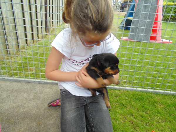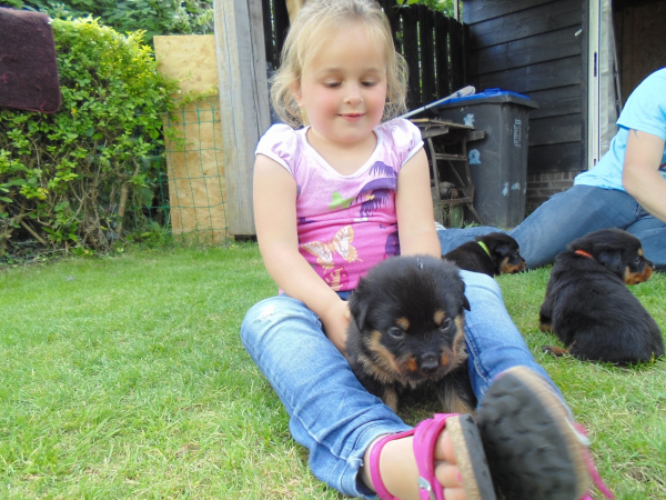 Gisteren weer even een bezoekje gedaan bij de puppy's ze zijn inmiddels alweer 3,5 week oud lopen, blaffen, bijten en grommen naar elkaar en spelen heerlijk met het bezoek vooral de kindjes zijn er niet bij weg te slaan!