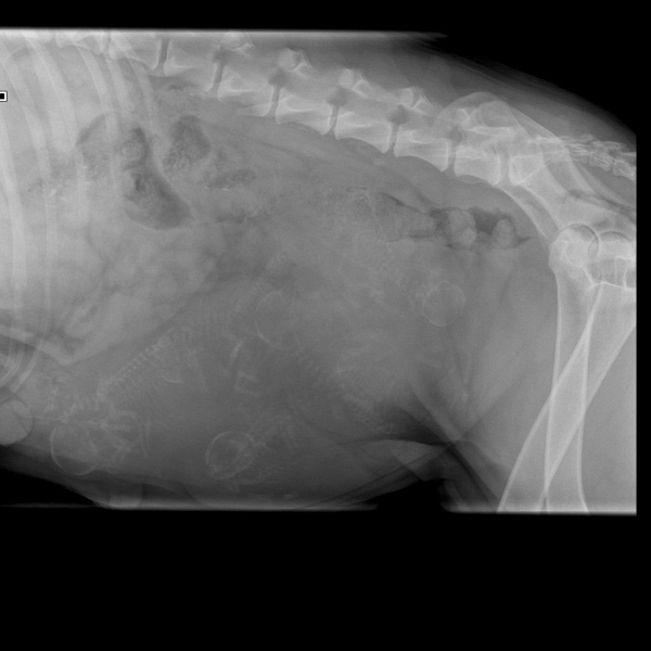 Inmiddels hebben we een röntgenfoto laten maken, alles zag er goed uit en we hebben 6 puppy's kunnen tellen!